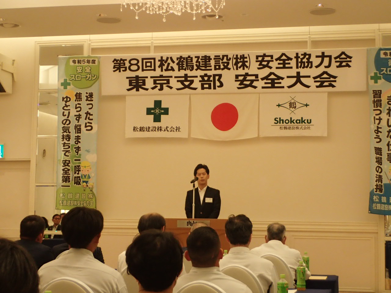 令和5年7月21日(金)、第8回松鶴建設㈱安全協力会東京支部 安全大会をアンフェリシオン (江東区亀戸)にて、弊社従業員と共に多数の協力会会員会社の皆様が参加され開催いたしました。