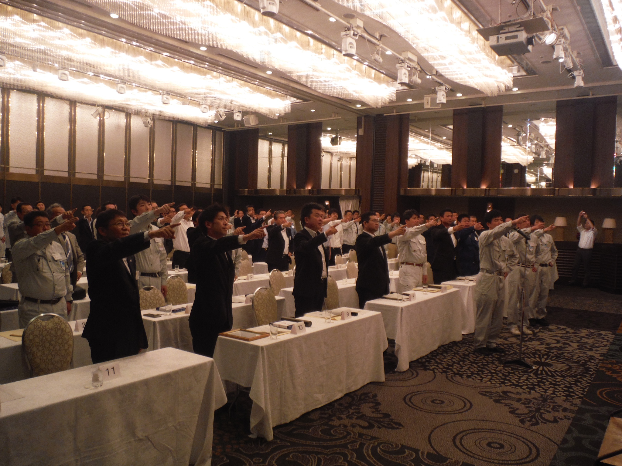 新入社員3名の誘導のもと、参加者全員でスローガンの唱和を行いました。