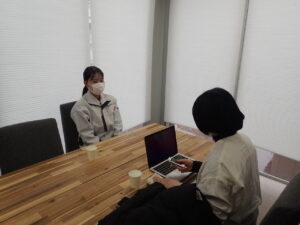 現在、建設会社で仕事をしながら感じていることについて、明るく話してくれました。