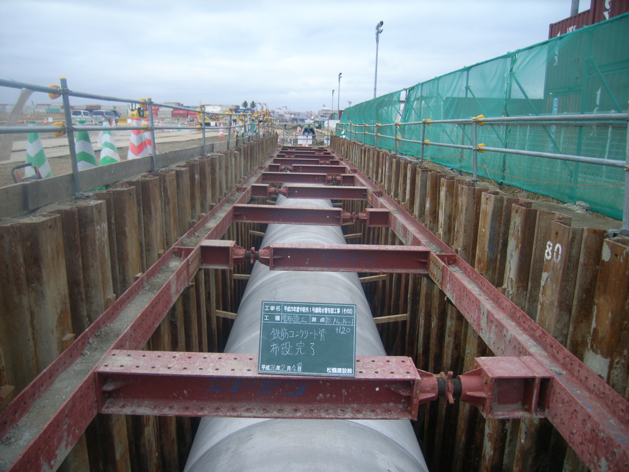 雨水管布設(鉄筋コンクリート管 内径2,200㎜)施工延長L=150m 仮設工 一式