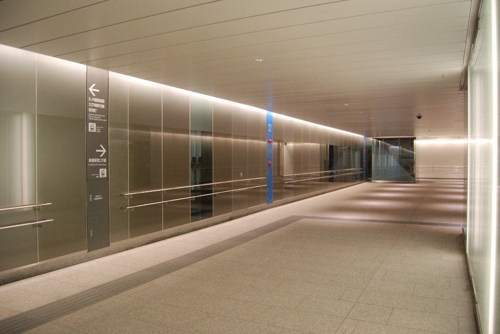 新宿副都心の地下歩道ネットワーク整備上の地下歩行者専用道 建築内装工事 RC造・一部S造 地上1階・地下1階、建築面積27.04m2、延床面積 382.47m2 建築工事 直接仮設、鉄筋、コンクリート、型枠、既製コンクリート、防水、石、金属、左官、建具、内装、サイン、植栽、外構、エスカレータ点検 電話・通信設備工事 音声誘導設備、ITV設備、放送設備、無線通信補助設備、電話設備、中央監視設備、中央監視設備改修、機械設備工事 空調設備、給水設備、連結送水管設備 電気設備工事 電灯設備、動力設備、動力設備改修 消火設備工事 消火器設備、自動火災報知設備