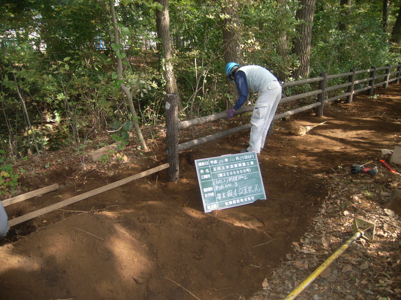 施工延長1,364m 連続繊維補強土工 75.7m3 木柵工 336m 排水工 19.3m 運搬工 115.8m3 舗装工 191.9m2 防護柵工 1,055m