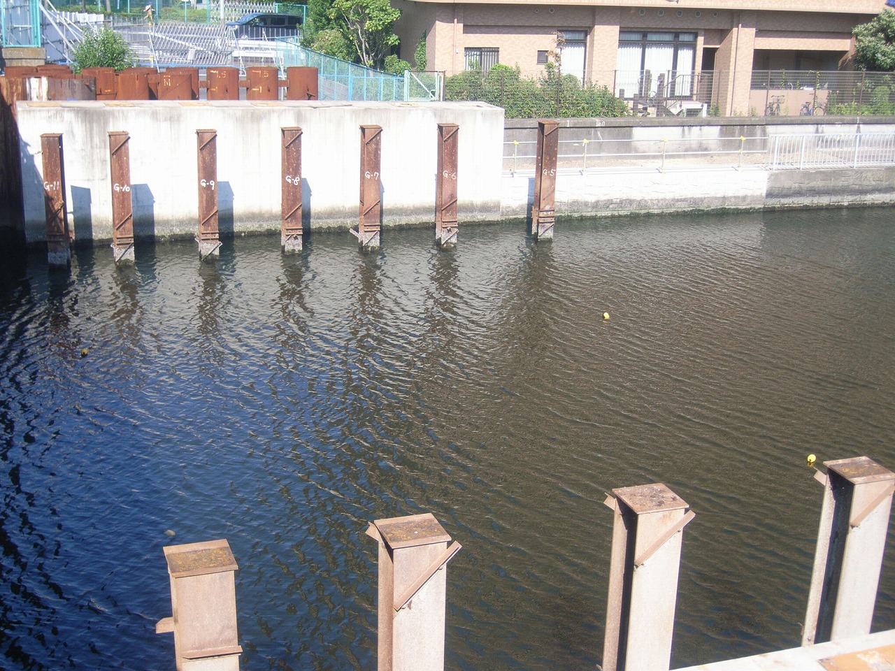 ・橋梁下部工 仮橋・仮桟橋工 支持杭引抜工(H-400×400)12本 支持杭引抜工(H-350×350)5本 支持杭切断工(H-400×400)21本 支持杭切断工(H-350×350)31本 覆工板撤去工 1534m2 覆工板設置工 725m2 土留・仮締切工 鋼管矢板切断工(φ600)27本 鋼矢板引抜工 103枚 ストラット躯体工 ストラット据え付け工 6本 ・付帯工 護岸工 鋼管矢板打込工 6本 躯体工 コンクリート工 41m3 型枠工 76m2